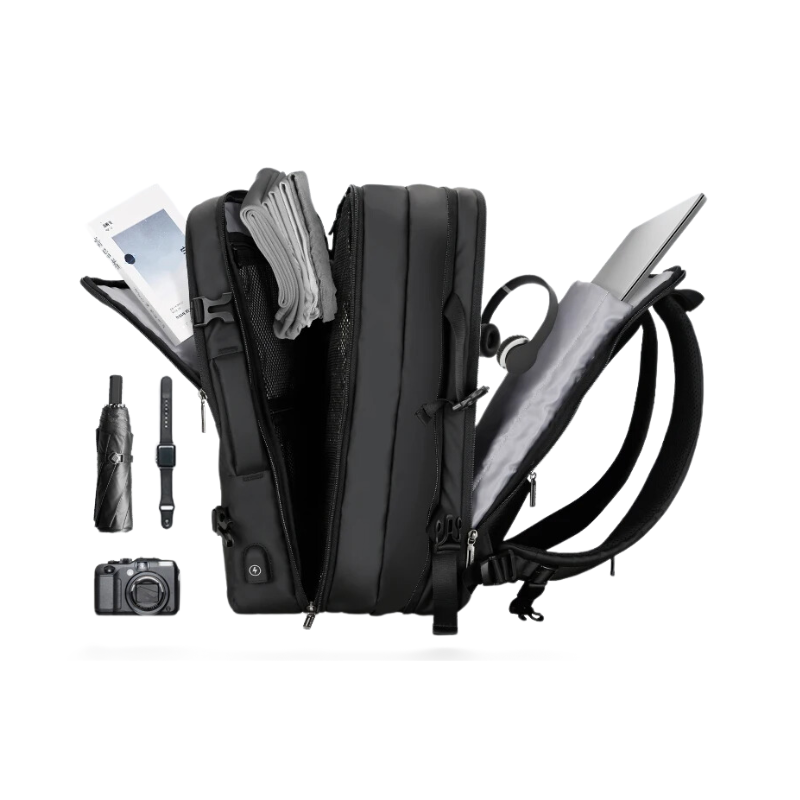 Nie wieder endloses Suchen. Unser hochwertiger Rucksack bietet nicht nur großzügigen Stauraum, sondern auch eine durchdachte Organisation mit einer Vielzahl von Fächern, um Ihre Gegenstände optimal zu verstauen und leicht zu finden. Nie wieder Unordnung oder verloren gegangene Gegenstände – mit unserem Rucksack haben Sie alles griffbereit und übersichtlich geordnet, egal wohin Ihre Abenteuer Sie führen.