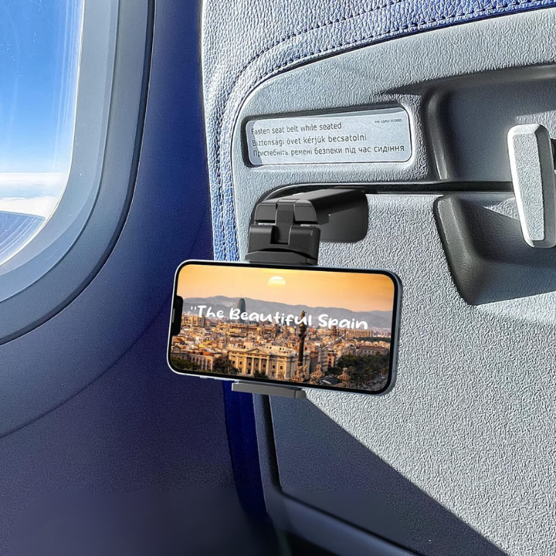 Unser multifunktionaler 360° Handy-Halter ist der ideale Begleiter für dich als Reisender, der unterwegs Entertainment genießen möchte. Egal ob im Zug, Flugzeug oder Hotelzimmer - dieser Halter bietet dir immer den perfekten Blickwinkel.